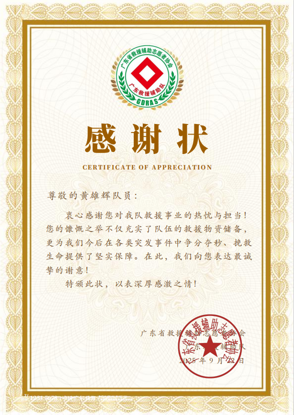 慷慨捐赠,为爱心公益添砖瓦时间:2025-10-21 【欢迎新装备】 感谢队友黄雄辉 助力广东救援辅助队! 好消息要和大家分享!广东救援辅助队最近收到了一份特别实用的礼物——一台全新的便携式应急装备指挥箱 “快速部署箱3号”。 马景宏队长代表广东救援辅助队水域应急分队接收捐赠物资 协会秘书长李婉静代表广东省救援辅助志愿者协会向黄雄辉颁发感谢状 # 这个箱子有什么用? # 在救援现场,快速建立指挥中心至关重要。这个“快速部署箱”就像一个移动工作站,能让我们更快地部署设备、更高效地沟通联络,从而为生命争取更多宝贵时间。 # 感谢每一份实实在在的支持 # 公益之路,需要大家携手同行。感谢队友黄雄辉的这份心意,它让我们前行的脚步更加有力。也期待更多朋友能加入进来,用行动支持公益。 每一份关注和帮助,都是我们坚持下去的动力。感谢您!和我们一起守护更多人的安全。 编辑 | 严丽娟 审核 | 杨培敏 阮慧怡 上一篇“飞”凡使命,科技救援下一篇牵着蜗牛去散步 |